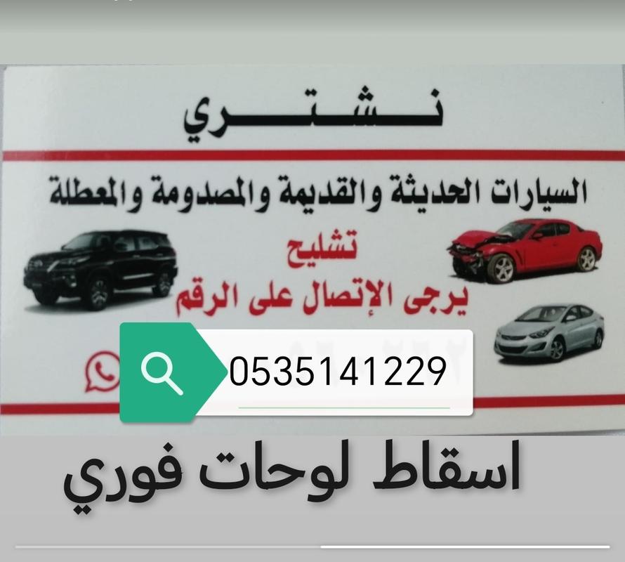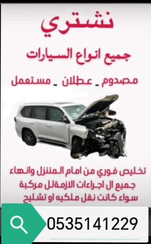 تشليح الحاير لشراء السيارات المصدومة والعطلانة 📌اسقاط فوري عبر نظام ابشر 📌اسعار مناسبة 📌معاينة السيارة عند باب منزلك 📌سحب السيارة بالسطحة علينا 📌دفع فوري بعد الاتفاق وانهاء إجراءات إسقاط المركبة 📌0535141229